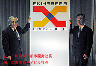 2004.04.21−NTT都市開発とダイビル、鹿島の3社は20日、秋葉原駅前西側に建設中の「秋葉原ITセンター」(仮称)の正式名称およびロゴマークを決定したと発表した。名称は「秋葉原クロスフィールド」で、地上31階の「秋葉原ダイビル」と同22階の「秋葉原UDX」の2棟から構成される。オープンはそれぞれ、2005年3月と2006年3月。秋葉原駅は、東側にもヨドバシカメラの大型店舗の進出が2005年に計画されており、町の様相は大きく変化することになりそうだ。
