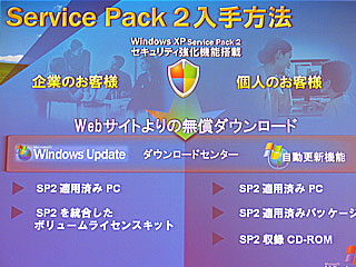 提供形態はオンラインとオフラインがあり、オンラインではウィンドウズアップデートおよびダウンロードセンターを利用して、2日の午前0時から開始している。ダウンロードサイズは、XPプロフェッショナル版で最低100メガバイト、XPホーム版で同80メガバイト。これまで一度もウィンドウズアップデートしていない場合は最大で270メガバイトとなる。また、企業ユーザー向けの自動更新機能による適用では、評価期間を考慮して29日からの提供とする。さらにしばらく様子をみたいユーザーのために、自動更新させないためのツールも用意しているという。