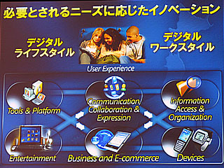 また、来年の今ごろ登場するとみられる次期デスクトップ「Windows Vista」については、「あらゆるデジタルデータを自由にコントロールする機能を持っており、大きな期待を持って市場に受け入れられると思う」と自信をみせた。