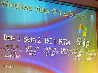 2006.09.14−マイクロソフトは、次期デスクトップOS(基本ソフト)である「Windows Vista」のベータプログラムを完了し、ソフト開発者やハードウエアパートナー、企業のシステム管理者、上級ユーザー向けにRC1(出荷候補版)の提供を開始した。Vista対応のハード・ソフトを準備するうえでの最終テストに利用できるもので、これにより対応製品としての認定を得ることができる。この時期にRC1が出たことで、企業ユーザー向けは今年11月、一般ユーザー向けで来年1月とされていた正式版発売スケジュールが予定通りほぼ確定した。