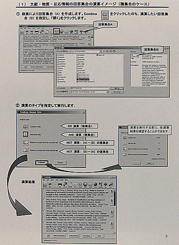 これまでも、一つの回答集合(検索によって得られた結果の集合体)のなかで情報を選別することはできたが、複数の回答集合を組み合わせることはできなかった。今回の“回答集合の演算機能”により、いくつかに分割して保存しておいた化学関連の文献・物質・反応の回答集合を一つの新しい回答集合にまとめたり、保存していた回答集合と新しく検索した回答集合のなかから必要な情報だけを抽出(和集合・積集合・差集合を指定)したりするなど、自分の研究目的に沿った最適な回答集合を構築することが簡単にできるようになった。