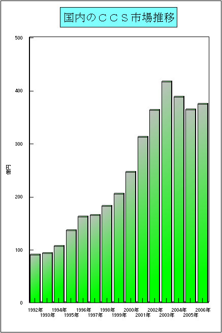 CCSnewsでは、毎年のCCS特集に合わせて、主要ベンダー各社の売り上げの推移をもとにしたCCS市場動向を調べている。それによると、2006年度の国内CCS市場規模は約374億円で、3%ほどの成長をみせたとみられる。