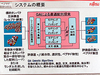 富士通は、昨年にバイオIT事業開発本部を内外合わせて130名体制に再編し、バイオケミカルプロジェクト室を立ち上げて、先端技術をサービス事業に展開する準備を進めてきていた。事業拠点の幕張システムラボラトリー内にトータル性能6.2テラFLOPSの計算機環境(PCクラスターなど)を整備。これをサービスに利用する。