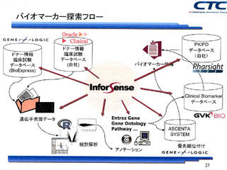ただ、臨床データと遺伝子情報を解析するソフトが別々の製品であり、相互に関連付けて情報を扱うことが難しいという問題があった。そこで、同社では英インフォセンスのワークフローツール「KDR」を利用したソリューションを提供していく方針。KDEには、あらかじめ臨床データ解析に特化した「ClinicalSense」、SNPs解析などを行うための機能を盛り込んだ「GenSense」が用意されており、これを組み合わせることでバイオマーカー探索などを容易に行うことが可能になる。