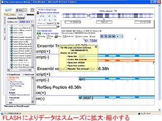 また、ゲノム統合データベースは数百から千種類のデータベースを包含することになるが、従来のソフトがそれぞれのデータベースにアクセスするのに対し、OmicBrowseではまとめて1回のアクセスで済むため、ネットワーク負荷が大幅に軽減される。データサーバーを複数台連結して、大量のデータの分散共有を図ることができることから、内部データ量の増加にも柔軟に対応することが可能だ。