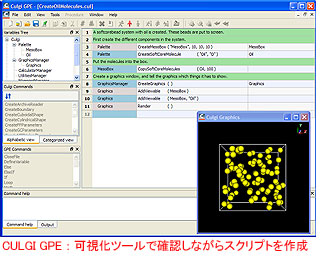 CULGIでは、これらのライブラリーを直接利用するほか、GUI環境でスクリプト作成ができる「CULGI GPE」も用意されている。マウス操作で簡単にスクリプトを組み立て、最終的にPython形式などでエクスポートすることが可能。計算条件を一部変更したいときなども、GPEから設定パネルをTclファイルとして出力できる。こうしたスクリプト集を共有できるようにしておけば、エンドユーザーはそのスクリプトを起動して手元で簡単に計算を行うことができる。