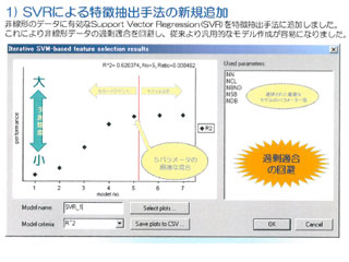 一方、モデル作成機能を持つ「ADMEWORKS ModelBuilder」では、非線形のデータに有効なSVR(Support Vector Regression)特徴抽出手法が新しく採用された。非線形データの場合に、他の手法で過剰適合となる不都合を避けることができるという。