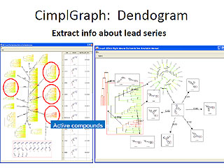 CIMPLは、化合物ライブラリーをSDファイル形式で読み込み、ワークシートのイメージでさまざまな解析を行うことができるソフト。2次元/3次元のグラフ表示、構造的類似度の算出と類似構造検索/ネットワーク解析、クラスター解析、SAR解析、フラグメント構造解析などの作業をこれ1本で行うことができる。