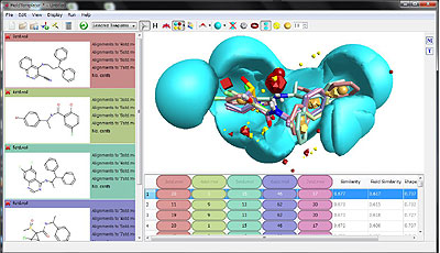 「fieldtemplater」は、フィールドベースでファーマコフォアを生成するツール。標的たん白質の構造情報が未知の場合でも、その活性リガンドの構造をいくつか利用することで、フィールドの高度な類似性を示す集合を見つけ出すことができる。Gたん白質共役型受容体(GPCR)やイオンチャンネル、新規標的などを用いる創薬に威力を発揮する。