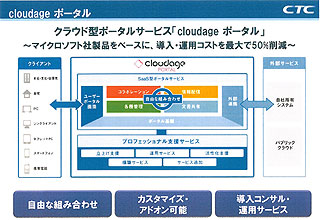 とくに、新たに提供開始するサービスである「cloudage portal」は、ASP形式で行ってきた既存ポータルサービスを、マイクロソフトのシェアポイントサーバー2010を基盤にリニューアルしたもの。Wikiやブログ、アンケートなどの各種パーツを組み合わせて社内サイトやグループサイト、取引先と共有するサイトなど、目的や規模に合ったさまざまなポータルサイトを柔軟に構築することができる。立ち上げや構築、運用をCTCに任せることも可能。価格は1ユーザー当たり月額980円から。