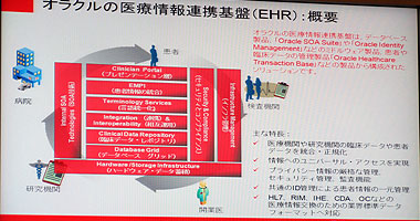 オラクルグループ全体では、ライフサイエンス(医薬分野)とヘルスケアに(医療分野)分けてソリューションを拡充しているが、日本ではとくに政府が推進する「医療情報連携基盤」に焦点を当てたビジネスに力を入れる。