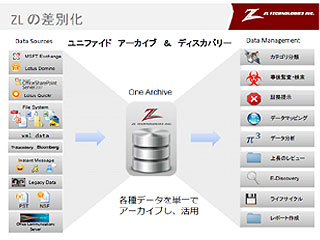 同社の「ZLユニファイドアーカイブ」(商品名)は、こうした訴訟リスクの回避だけでなく、社内のあらゆるデータがリアルタイムに集積されていることを生かして、素早い経営判断を下す際の武器としても活用することが可能。10年以上の歴史のある製品で、企業ユーザーが必要とするほとんどの要件をすでに満たしているという。