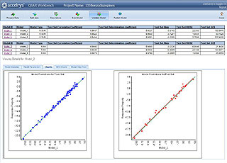 とくに、QSARワークベンチは、今後の同社の製品づくりのコンセプトを探る意味でも重要になるソリューションだと思われる。一口で言うと、Pipeline PilotをベースにQSAR(定量的構造活性相関)研究を行うために必要なコンポーネントを揃えた製品。QSAR予測モデルの開発・検証・導入の自動化、モデルの共有と解析の迅速化を実現することができる。