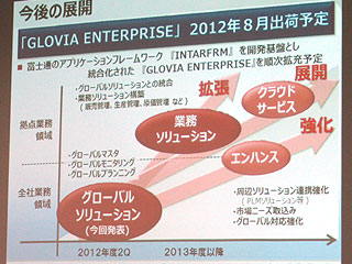 同社では、今回の「GLOVIA ENTERPRISE」は第1弾であると位置づけており、将来的には販売管理や生産管理、原価管理などの業務アプリケーションを開発し、統合ソリューションとして大きく発展させたいとしている。