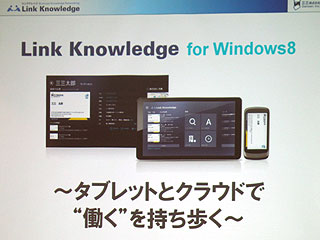 2012.09.26−三三(本社・東京都千代田区、寺田親弘社長)は24日、Windows8ベースのタブレットPCを活用する名刺管理アプリ「Link Knowledge for Windows8」を開発し、Windows8発売の10月26日に合わせて販売・サービスを開始すると発表した。「Link Knowledge」自体は2007年に発売して700社のユーザーに利用されている製品で、専用スキャナーで名刺データを読み取り、クラウド上に顧客データベースを構築して、その情報をビジネスに活用するための各種アプリケーションを提供している。タブレットPCに対応することにより、外回りの営業マンなどにとってさらに使いやすい環境が実現する。使用料金は月額2,500円からで、3年間で3,000社への導入と、3年後の年間売上20億円を見込んでいる。