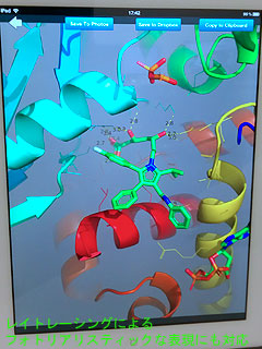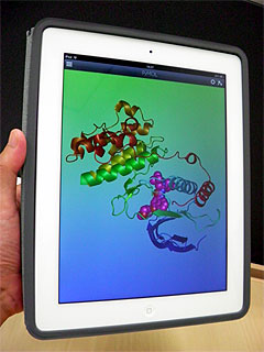 今回の「PyMOL on the iPad」は、分子構造を表示するだけの機能に限定されているが、レイトレーシング表示を含む美麗なコンピューターグラフィックスで分子モデルを描き出すことが可能。プロテインデータバンク(PDB)やPubChemから構造データを検索して表示することもできる。ネットワークストレージに自分の分子データを保存しておいて、学会のポスターセッションなどで実際の構造を3次元で見せながら説明するときに便利だなどという利用者の声もあるようだ。