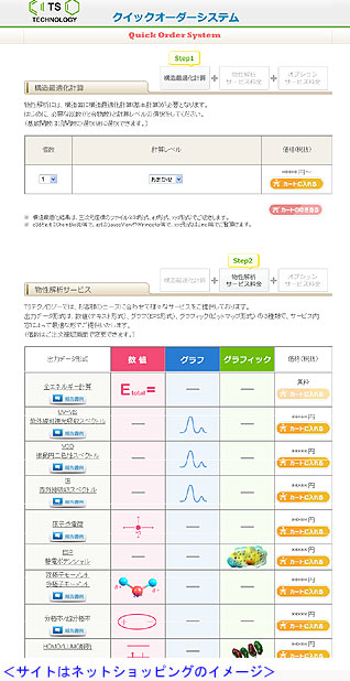 今回の新サービスは、理論解析(受託計算)の「クイックオーダー」として実施される。従来のサービスとの違いは、あらかじめ解析メニューが用意されており、同社のホームページ上でネットショッピングのように依頼ができること。費用は計算する分子の大きさや計算内容で異なるが、1件当たり約2万円と安価で、その場でクレジットカード決済(銀行振込も可)ができる仕組みも取り入れている。