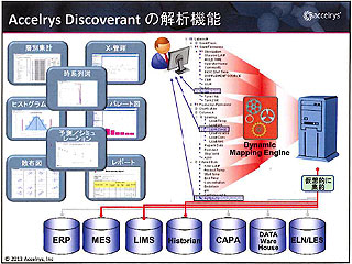 Accerlys Discoverantは、もともと2012年10月に買収したイージス・アナリティカル社の製品で、現在はアクセルリスの製剤・製造分野向けソリューションである「Accerlys Process Management and Compliance Suite」(PMCスイート)に組み込まれている。