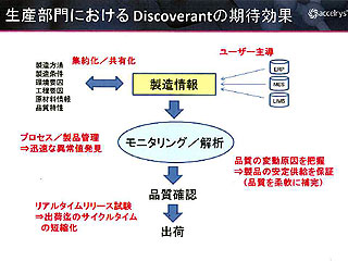 このICH Qトリオの適用を支援するのがDiscoverantの主要な役割の一つ。QbDを実現するためには、製法や環境要因、工程要因、原材料、品質特性などのファクターに基づき、品質に及ぼす影響をリスクアセスメント手法を用いて科学的に解析し、製品の品質を適切な範囲(デザインスペース)でコントロールすることが必要になる。さらに、PAT(プロセス解析工学)/RTRT(リアルタイムリリース試験)などを用いて製造の途中段階で品質評価を行い、個々の工程で生産条件を調整して品質をつくり込んでいく。