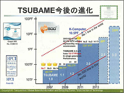 なお、今年6月のトップ500リストで世界一となった中国の「Tianhe-2」について、松岡教授は「GPU型スパコンとしてつくりは似ていて、われわれのTSUBAME2.0をよく研究して開発したという印象。ただ、ハード・ソフトは技術的には米国製スパコンと遜色なくなってきており、中国のレベルが上がっていると感じる。いずれにしても、TSUBAME3.0では各国のマシンを技術的に凌駕したい(最大性能の競争ではなく)」とした。