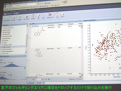 画面の構成も自由で、以前のクライアントではプログラミングの知識がなくてはカスタマイズは行えなかったが、今回の「Accelrys Insight」ではエンドユーザーが自分で好みの画面に簡単に変えることができる。