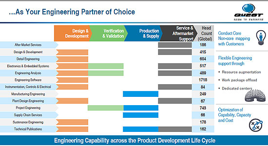 同社は、航空宇宙、石油・ガス、電力・産業機械、医療、交通・輸送、半導体、通信・消費財などの産業向けのエンジニアリングに集中したサービスを提供する企業で、設計・開発から保守・サービスまでのライフサイクル全般をカバー。アジアに4,500人、北米に1,300人、欧州に1,000人のエンジニアを抱えている。特定の顧客と長期間にわたる戦略パートナーシップを組み、顧客の拠点の近在に常駐して密着したサービスを提供するのが同社のビジネスモデルで、顧客のグローバル展開を柔軟にサポートできるのも強みだという。