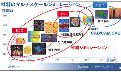 現段階での最大の課題は、メソ領域とマクロ領域の連結である。これは、ミクロ/メソ領域をカバーするCCSベンダーと、マクロ領域を扱うCAEベンダーが別の企業であることも一因。その意味で、ダッソー・システムズ(3DS)はグループにCCSベンダーのBIOVIAとCAEベンダーのSIMULIAの両方のブランドを抱えているため、双方をつなぐうえで格好のポジションにあるといえる。