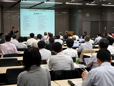 キックオフ時点のコンソーシアム法人会員は、エヌ・ティー・エス、東芝機械、NEC、伊藤忠テクノソリューションズ、デンソー、出光興産、シミュラティオ、AGC旭硝子、住友金属鉱山、日本特殊陶業、トヨタ自動車、富士通研究所、リンテック、リガク、クラレ、JSR、住友化学、富士フイルムホールディングス、富士フイルム、ダッソー・システムズ・バイオビア、MCHC R&Dシナジーセンター、村田製作所、日東電工、サムスン日本研究所、ペンギンシステム、JX金属、東芝研究開発センター、豊田自動織機、新日鉄住金、古河電気工業、アルゴグラフィックス、コベルコ科研−の32社(申し込み順)。全体として自動車材料と電子材料関連の企業が多いようだ。当日は、欠席した数社を除いて、各社がコンソーシアムで取り組みたい課題などをショートプレゼンテーションした。