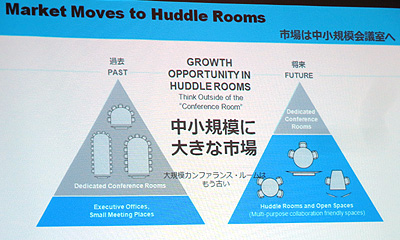 同社の説明によると、対象になる中小規模会議室は4,000万室ほどあり、1室当たりの投資額として500〜1,000ドル、潜在市場規模は200億〜400億ドルが期待できる。「会議室の机やイスのROIを問う人はいない。必需品として、すべての会議室にウェブカメラとスピーカーを備えさせたい」(ビデオコラボレーション部門副社長のスコット・ワートン氏)とする。