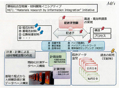 MI2Iは、文部科学省プロジェクトとして、科学技術振興機構(JST)イノベーションハブ構築支援事業の枠組みで、2015年7月から(5年間)物質・材料研究機構(NIMS)をハブ拠点として推進されている。NIMSは、2017年度からの新体制として、MI2Iを包含したかたちで物質・材料開発のあり方を革新する「統合型材料開発・情報基盤部門」(MaDIS)を設立。革新的材料開発力強化プログラム「M3」(エムキューブ)をスタートさせ、「MOP」(マテリアルズオープンプラットフォーム)、「MGC」(マテリアルズグローバルセンター)、「MRB」(マテリアルズリサーチバンク)からなる新体制で動き始めている。