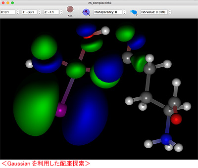 また、CONFLEXとGaussianとの連携利用はこれまでも重要なテーマになっており、CONFLEXで発生させた配座異性体ファイルをGaussianに読み込ませる(GaussView経由)ことができたが、今回のCONLEX 8では、外部プログラムとしてGaussian09/16を呼び出す機能が搭載された。同じマシンにインストールされていれば、CONLEX 8の中からGaussianを直接起動して構造最適化および配座探索計算を実行させることが可能。金属錯体など、力場パラメーターが用意されていない系でも精密な計算ができる。とくに、Gaussianそのものを使った配座解析は、当のGaussian自身も持たない機能であるため、ユーザーの関心は高い。