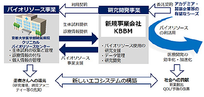 2018.03.21−京都大学と富士通など民間企業7社は20日、革新的医療開発を実現するための新たな産学連携モデルの取り組みとして、新会社「KBBM」(Kyoto Bridge for Breakthrough Medicine)を設立したと発表した。京都大学医学部附属病院に設立されたクリニカルバイオリソースセンターによるワンストップバイオリソース事業と連携して、患者などから提供されたヒト試料を医薬などの研究開発で利用するための枠組みの構築を目指す。将来的には、大学などのアカデミアで発見または開発されたシーズが、実際の医療現場に速やかに導入されることにつながっていくという。