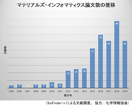 基本的に年々増加傾向であり、MI研究がグローバルで活発になっていることを裏付けている。2018年の88件が一番多かったが、今年も前年並みの水準には届きそうだ。MIはAIや情報処理系の分野でも研究が行われているが、今回はそちらはカバーしていない。ただ、全体的な傾向は同様だと考えられる。