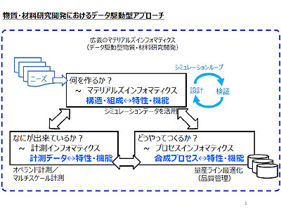 「いまとは表記がちょっと違うが、日本で初めてだったかもしれない。このときはまだ大きな流れにならなかったが、2013年8月にCRDSから戦略プロポーザル「データ科学との連携・融合による新世代物質・材料設計研究の促進(マテリアルズ・インフォマティクス)」が提出された。これをベースに産官学でいろいろな動きがあり、2014年から内閣府で「戦略的イノベーション創造プログラム」(SIP)が始まり、2015年からは文部科学省でわれわれの「MI2I」が始まり、2016年から経済産業省の「超先端材料超高速開発基盤技術プロジェクト」(超超PJ)がスタートするという一連の動きにつながった」