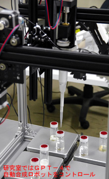 さらに、今回の研究の中では、実験室のロボットをコントロールすることにも挑戦しており、自然言語による指示で、モノマーを2種類混ぜてポリイミドを合成するロボットアームの制御プログラムを出力。容器をラフに配置しても、「カメラで正しい位置を認識してくれ、空間の把握や時系列的なことも理解できるので融通がきく。人間なら常識的に判断できることをいちいちプログラミングするのはたいへんであり、今回のGPT-4にはこの点でも大きな可能性を感じた」(畠山助教)という。今後は、有機溶媒を使用する環境への対応や、試薬ビンからサンプルをさじで取り出すなど、化学の実験に適したロボットの開発が進むと期待される。