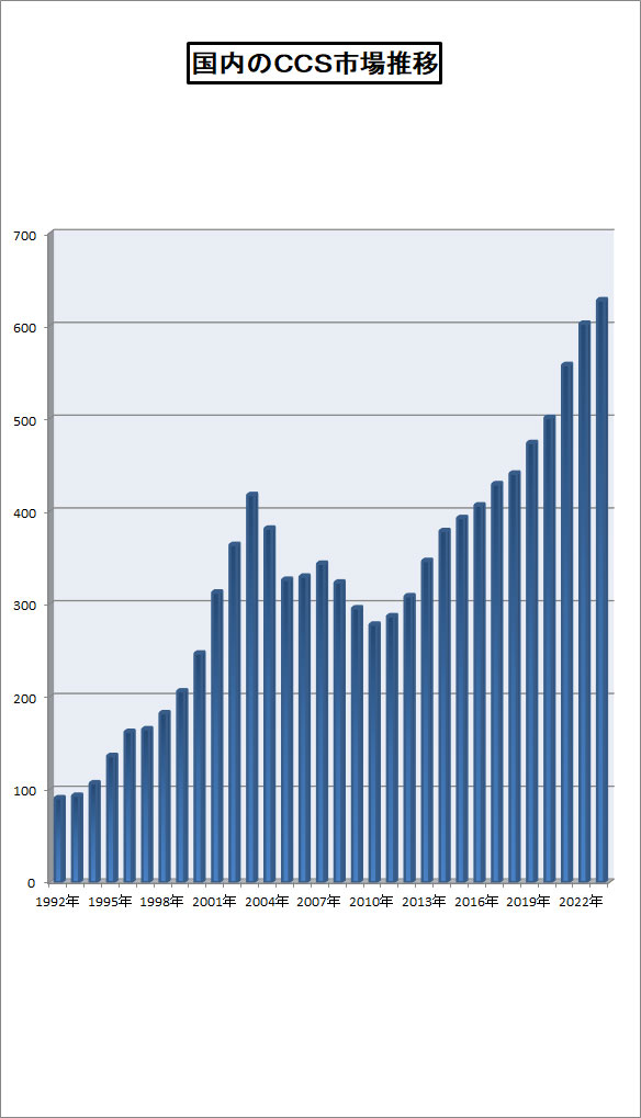 こうしたCCS関連の各種ソリューションを開発・販売している国内主要ベンダーの売り上げの推移をもとにした2023年度の市場規模は、CCSnewsの推定で約627億円。前年度に対して4.2%成長したとみられる。このほかに、受託研究スタイルのAI系ベンダーが関連する市場規模も、少なくとも30億円以上に達していると考えられる。